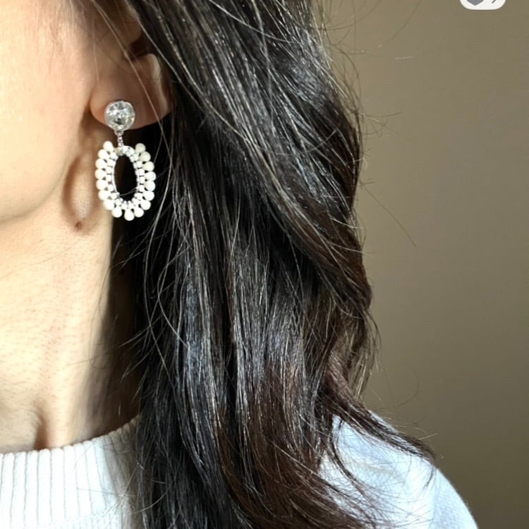 ホワイトはスワロフスキーストーンとマットホワイトビーズの組み合わせ。(マットブラックに使用しているスワロフスキーとはカットや形が異なります)オーバルタイプのみ。