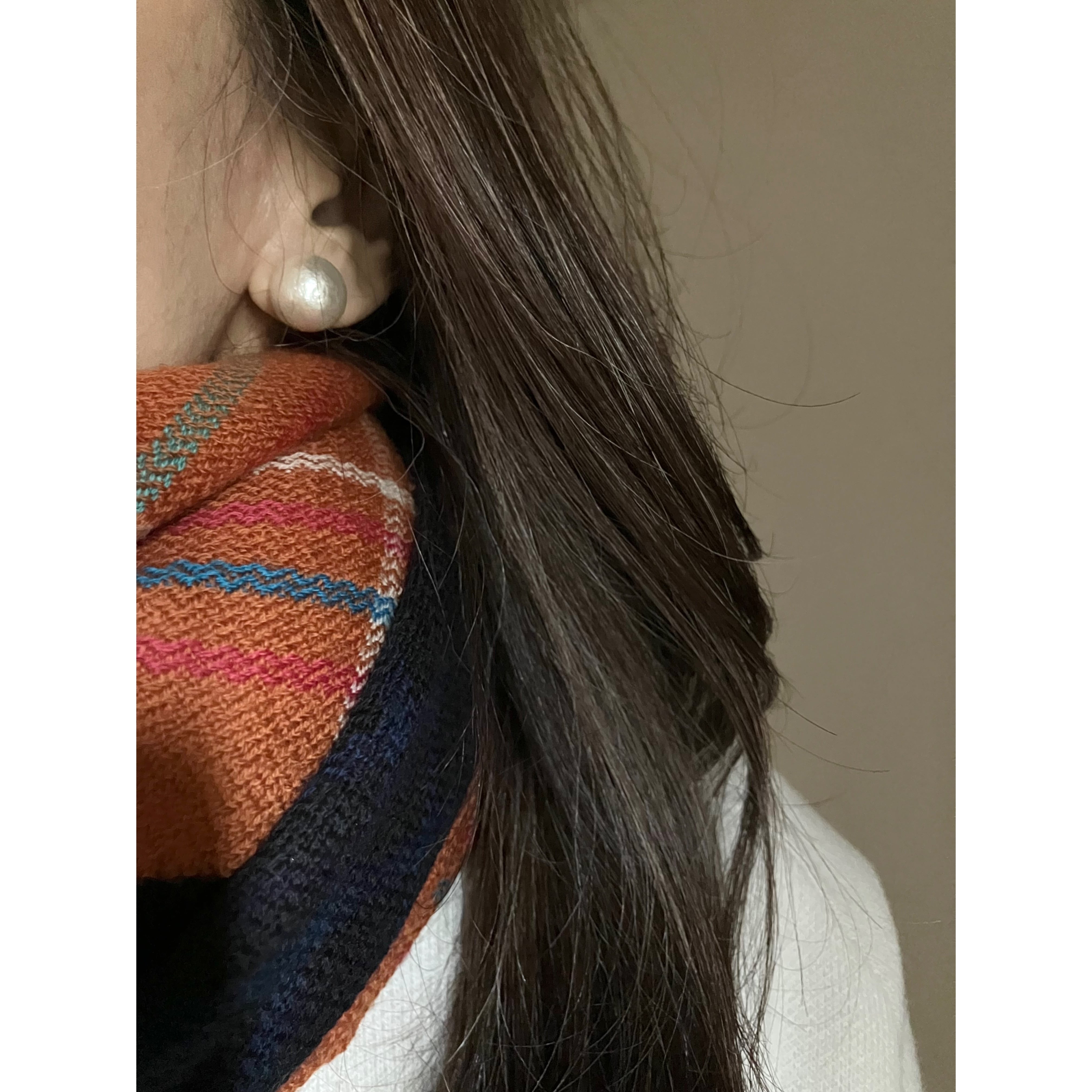 ○着画やネックレスと一緒に写っているコットンパールピアスは14mmサイズになります。