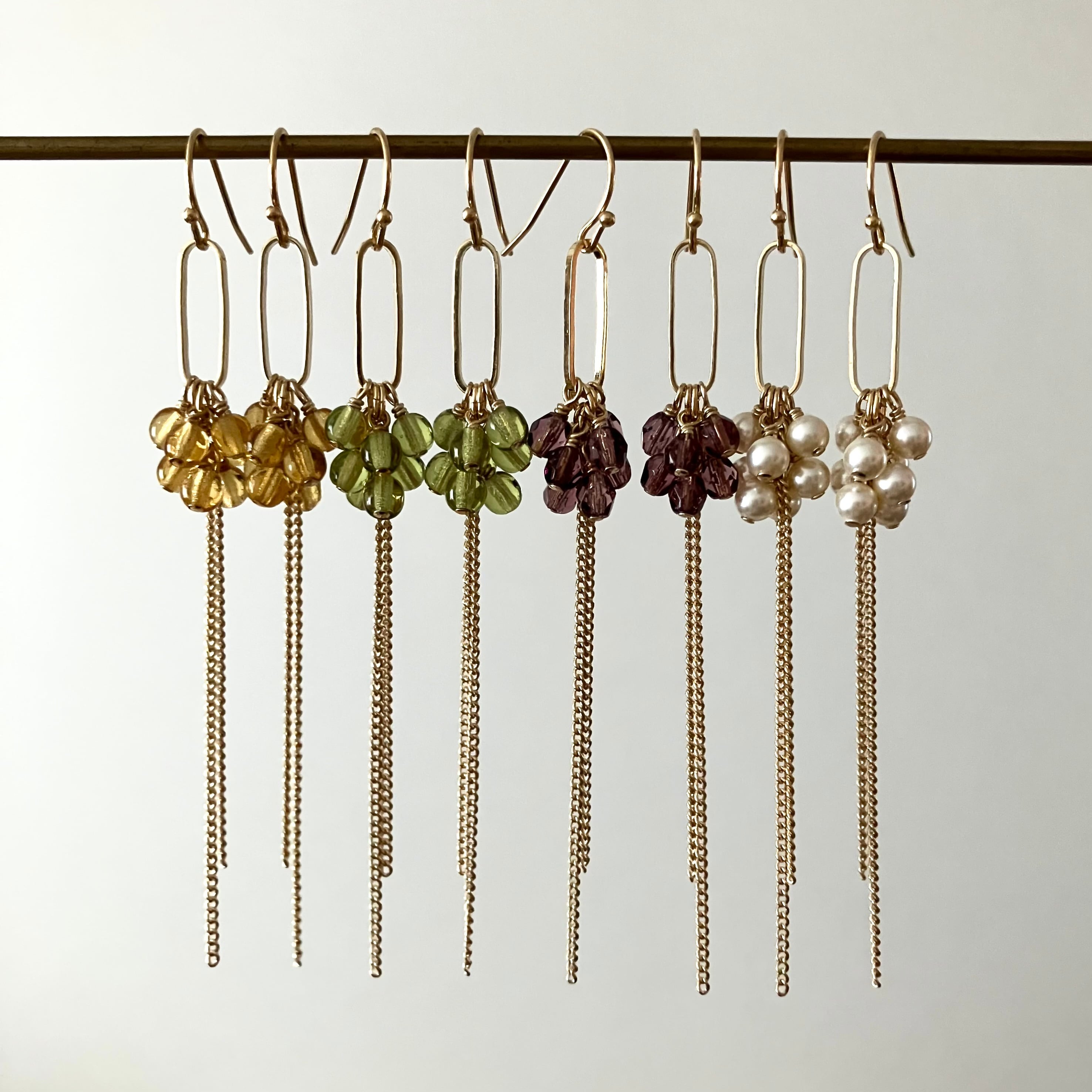 使用する石やビーズの質感・色によってイメージが変わるので色違いでご購入いただくお客様も。